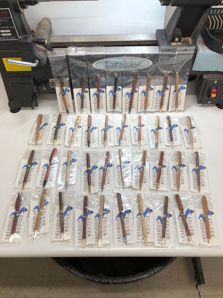 This year, we are taking part in Woodcraft’s “Turn for Troops” event. This year marks the 18th year they’ve held the event. We will be making pens in our shop to bring in to our local store for donation.